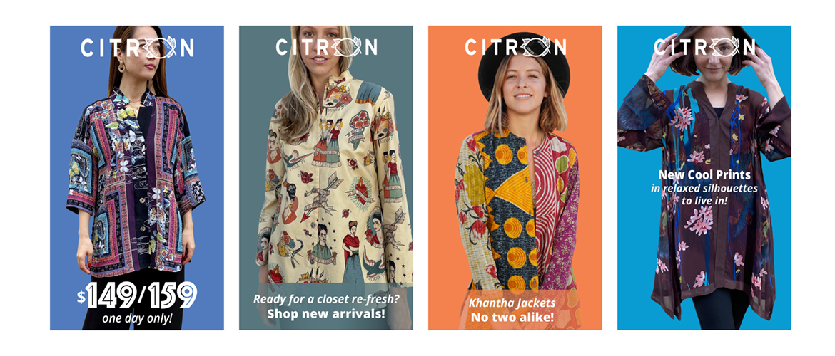 Citron Clothing was created in 1992 in Santa Monica, California, and has grown to represent wearable art, in pieces designed to enhance individual style with uniqueness and elegance.